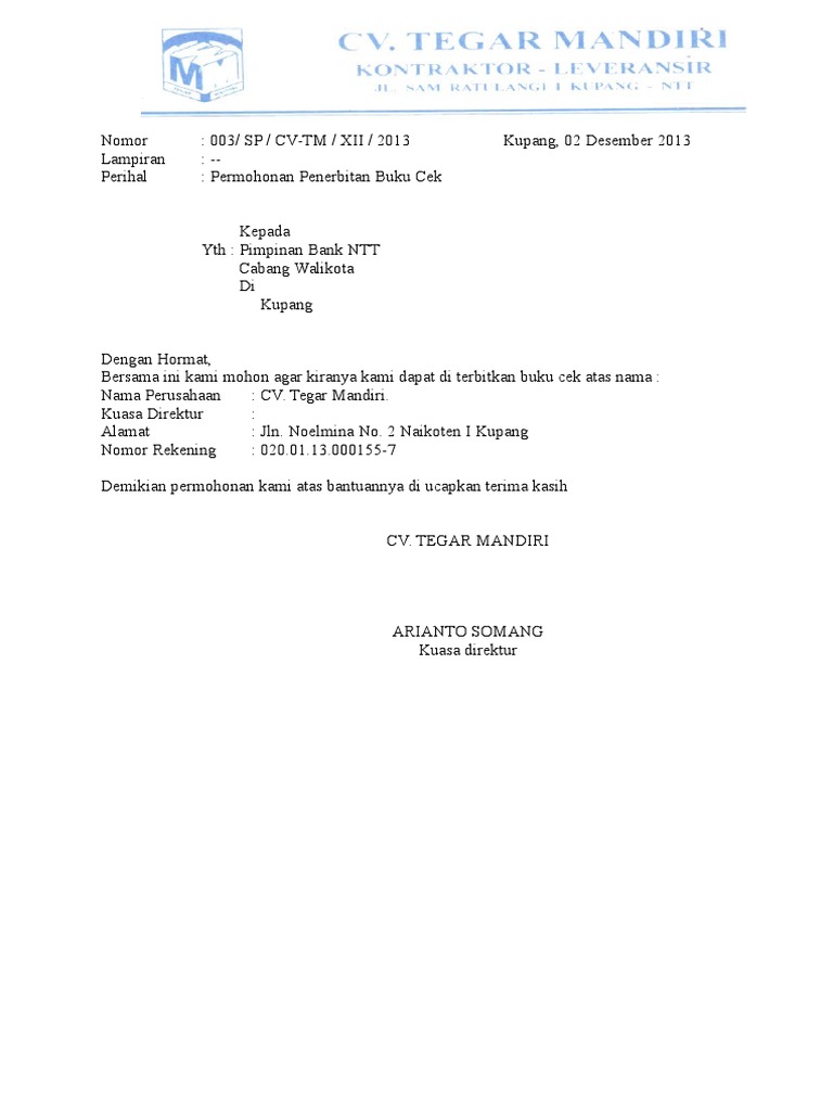 Surat Permohonan Pembelian Cek - Contoh Surat Permohonan Penerbitan Buku Cek Dan Giro Format Administrasi Desa : Check spelling or type a new query.. Check spelling or type a new query. Maybe you would like to learn more about one of these? We did not find results for:
